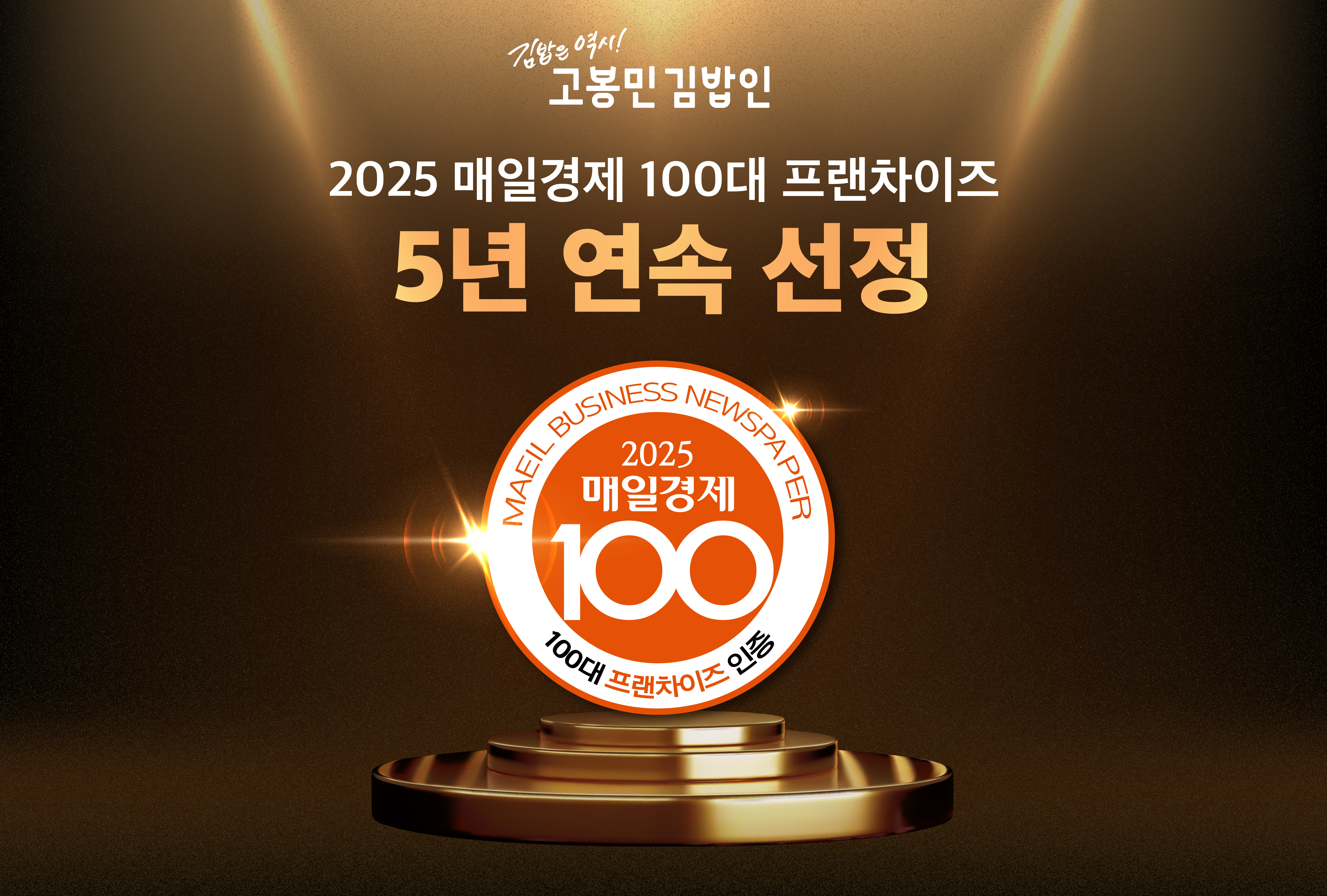 고봉민김밥인이 2025 매일경제 100대 프랜차이즈에 5년 연속 선정되었습니다. '매경 100대 프랜차이즈'는 공정거래위원회에 등록된 프랜차이즈 업체 중 브랜드 경쟁력, 가맹 본부 경쟁력, 트렌드와 미디어 지수, 사업성과 안전성 등을 종합적으로 심사해 매년 100개 브랜드를 선정하여 시상하고 있습니다. 고봉민김밥인은 올해 신제품 '하프통김밥 시리즈'를 출시했습니다. '통째로 즐기는 반줄 김밥' 이라는 콘셉트로 기존 김밥과 차별화된 맛과 든든함을 동시에 구현해 긍정적인 반응을 얻었습니다. 이와 함께 본사 지원 대규모 경품 이벤트와 창업 비용 지원, 조리 자동화 기기 도입 등 가맹점 매출 증대와 상생 경영으로 함께 성장하며 신뢰를 쌓아왔고, 이로 인해 5년 연속 공로를 인정받아 수상의 영예를 안았습니다. 지속적인 신뢰와 동행으로 고봉민김밥인의 성장을 함께해 주신 가맹점주님들께 진심으로 감사의 말씀을 전합니다. 감사합니다. |